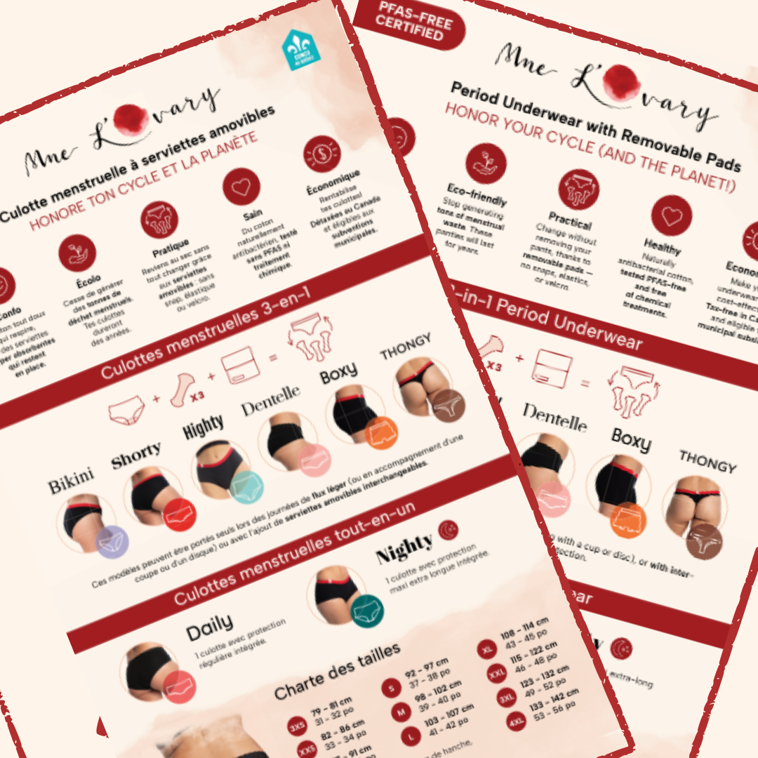 - Une affiche des modèles et du guide de tailles (bilingue)
